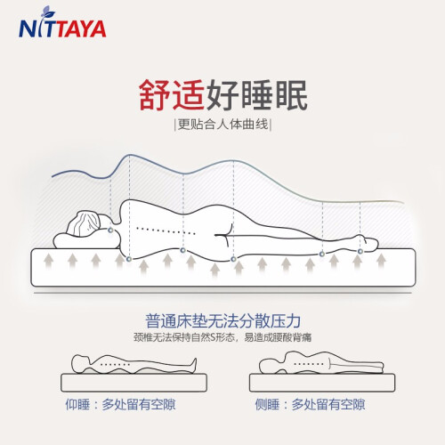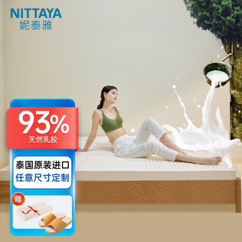 始于1985年的NITTAYA乳胶工厂,从橡胶种植开始,30年坚持自有橡胶林产天然乳胶制作所有商品。工厂拥有2.5万亩自有橡胶林,年产天然乳胶6万吨,不添加化学原料及奶香精,为消费者打造天然环保的健康睡眠环境。此款Nittaya妮泰雅 天然乳胶居家床垫床褥,一体成型,具有高回弹力,合理承托人体,睡感舒适。其天然乳胶中的橡树蛋白,有效抑制螨虫滋生。