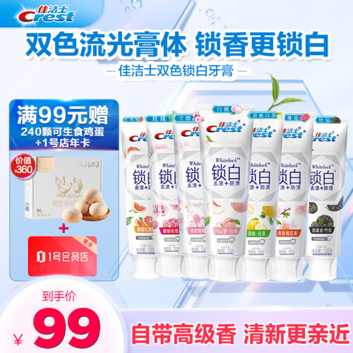 佳洁士香氛锁白牙膏7支120g 美白牙膏去黄去牙渍含氟防蛀共840g