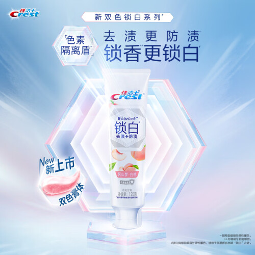 Crest佳洁士3D炫白牙膏一直有着很好的口碑,近期全新推出的锁白系列的致尚技术牙膏,提出了全新的牙齿美白理念,采用了宝洁研发的“锁白”成分,附着牙齿表面形成保护伞,既清洁牙齿污垢,又能一定程度抵御日常的食物染色。同时,选择了全新的花香口味,让清甜沁脾的香味在口中蔓延,增加刷牙时的舒适感,持久清新口气,晶莹透亮的膏体演值颇高。