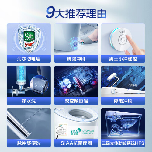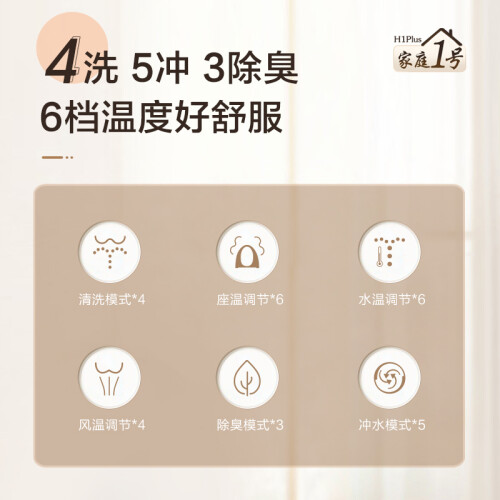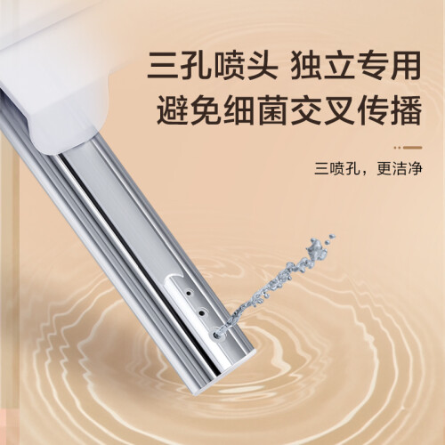 清洗模式*4 座温调节*6 水温调节*6 风温调节*4 除臭模式*3 冲水模式*5,喷嘴前后调节 不同位置照顾周全 私密洗、宝宝洗可前移 pp洗、按摩洗可后移,三孔喷头独立专用 避免细菌交叉传播 三喷孔,更洁净,一体式不锈钢喷杆 多成员家庭更安心 用前用后自洁防止沾染污物,避免堵塞或 滋生细菌,避免细菌交叉传播。