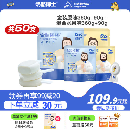 Dr.CHEESE 奶酪博士 儿童奶酪棒,专用配料不加1滴水的高钙系统,阻氧独立小包装,锁住莒养,18g科学控量,方便易储存,更特别添加维生素D,助力宝宝钙吸收,其干酪含量约为国标允许最低干酪含量奶酪棒的3.4倍,营养美味,宝宝爱吃~