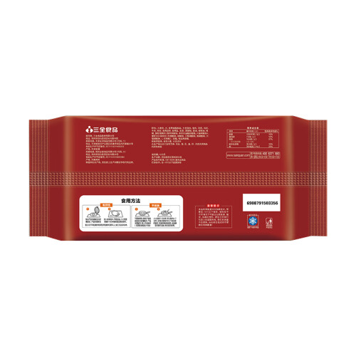 三全是三全食品股份有限公司旗下品牌,主要产品是低温速冻食品,如汤圆、水饺馄饨、粽子等,还有常温即食米饭套餐,以及其他特色出口食品。这款薄皮馅饼采用生皮生馅工艺,成型后饼皮厚度约0.5cm,直径11cm左右,在烙的时候总有香味飘出,外酥里嫩,外表的酥皮和内馅相互融合,口感丰富,可做为早餐食用。