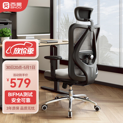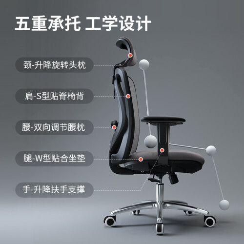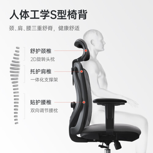 sihoo 西昊 M18 人体工学电脑椅,有蓝色、黑色、橙色三色可选,久坐会对腰椎产生伤害,M18可调节腰枕,它的腰枕上下可调节5厘米,前后深度可调节4厘米,更好的贴合腰部,做到舒适的支撑腰椎,舒缓久坐带来的疲劳感,椅背120°包裹腰背,可在90-120°之间任意后仰锁定。头枕可以45度旋转调节,升降9厘米7档锁定,分担颈椎压力,多维自由旋转头枕,帮助承托头部重量,分担颈椎受力,工作倍感轻松,扶手7厘米升降4档锁定,调节手部满意高度。