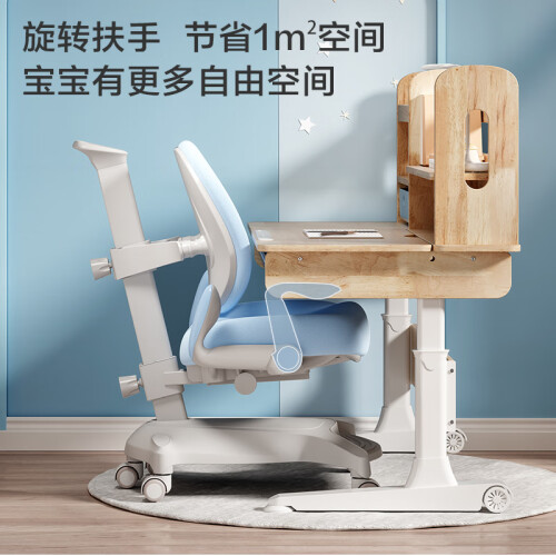 这款电脑椅0-90°可旋转扶手 节省空间,收放自如,坐好3个90°匠心打造,舒适自如的座椅更减压。坐下就锁定,锁定注意力,无惧孩子好动,滚轮紧紧锁住,自动锁紧牢牢锁住注意力。