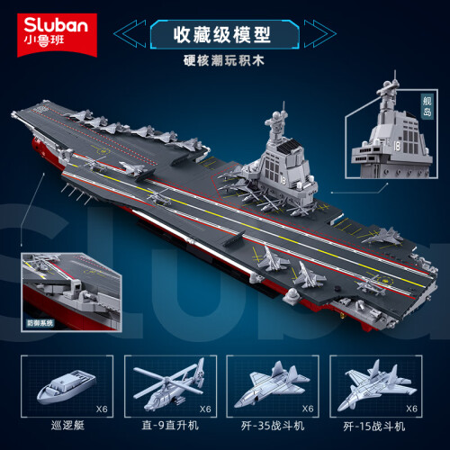 小鲁班积木致敬中国航母进入弹射时代,中国第三艘航母【福建舰】。收藏级硬核潮玩积木。中国首艘斜角甲板航空母舰,第三艘航母长约320米,宽度约为73米,安装了3具弹射器,采用经典的“弹射起飞-拦阻降落”,直接进入电磁弹射时代。将可以搭载更大型的飞机,包括新型固定翼预警机空警-600,此外预计将上舰的还包括新一代海军舰载四代隐形战机。