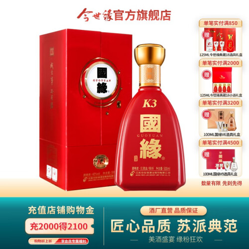 今世缘这款42度浓香型白酒,选用水、高粱、大小麦、豌豆、大米和玉米为原料酿制而成。酒液清亮透明,入口顺滑不刺喉,落喉绵甜,窖香浓郁,饮后回味悠长。适合家宴招待、节庆饮酒、商务宴请和自饮小酌。建议在阴凉、干燥、通风条件下保存。