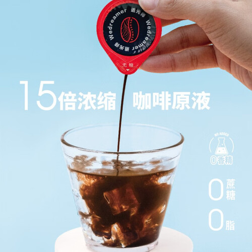 15倍浓缩的意式风味咖啡原液,日本鲜萃工艺,保留香醇,无添加糖。常温保存,撕开后,与140-150ml水或牛奶混合即可。
