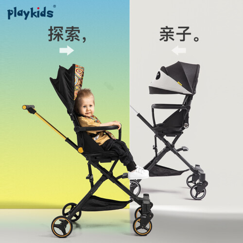 此款playkids 儿童手推车采用防金字塔的四棱锥结构,稳固不侧翻,加大加宽座椅,全拆式0障碍出入扶手,宝宝做得更舒适。创新折叠设计,实现折叠卡位,一按一推,轻松快速折叠