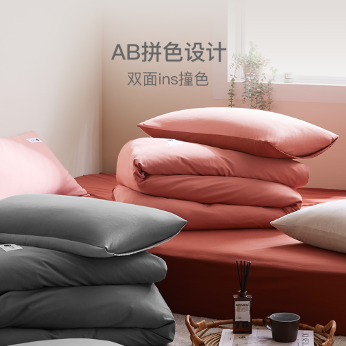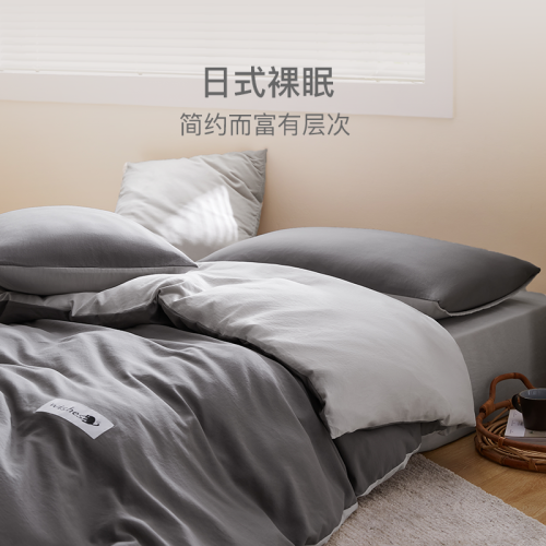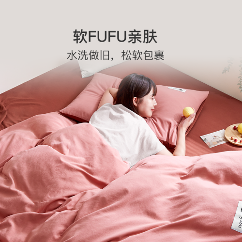 表面微绒质感,绒毛短而均匀,亲肤舒适。碳素磨毛工艺,使织物表面形成一层均匀短密的绒层,手感柔软。经过水洗工艺处理的面料,形成自然的褶皱和肌理感,慵懒随性。
