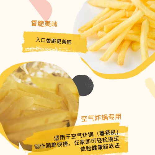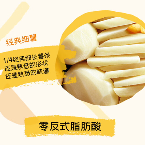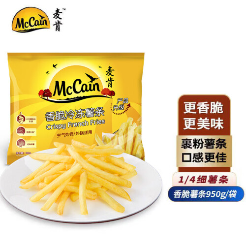 McCain麦肯是来自加拿大的食品品牌,主要产品为薯条,为汉堡王提供薯条的就是他家,此款为3/8粗冷冻薯条,整颗土豆切割制作,不含反式脂肪酸,还原浓郁薯香,裹粉工艺,香脆升级,规格:950g。