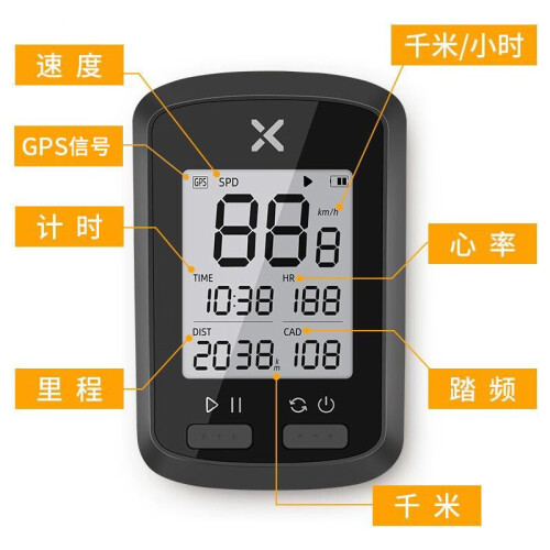 行者 小G+ IPX7级防水,25H续航时间,自动背光无惧环境变化,支持四星定位:北斗、GPS、Glonass、Galileo,1.8寸高清LCD屏幕,显示更清晰,可连接传感器(速度、踏频、心率带)支持速度、平均速度、最大速度、运动时间、时钟、里程、海拔、坡度、总里程,心率、平均心率、最大心率、踏频、平均踏频、最大踏频。