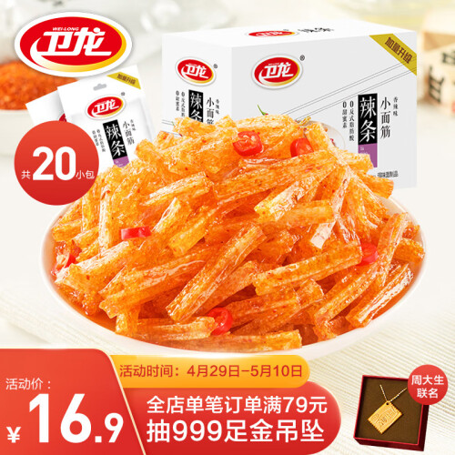 当前的位置: 首页 > 今日值得买 > 卫龙辣条休闲小零食香辣味小面筋480g/袋约20包露营野餐怀旧童年小吃
