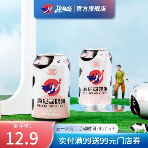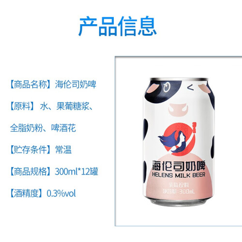 Helens 海伦司 乳酸菌风味奶啤,具备啤酒的麦香和清香,又兼有奶香的酸甜,添加乳酸菌,唤醒肠道活力。规格:300ml*2罐。