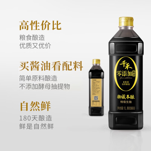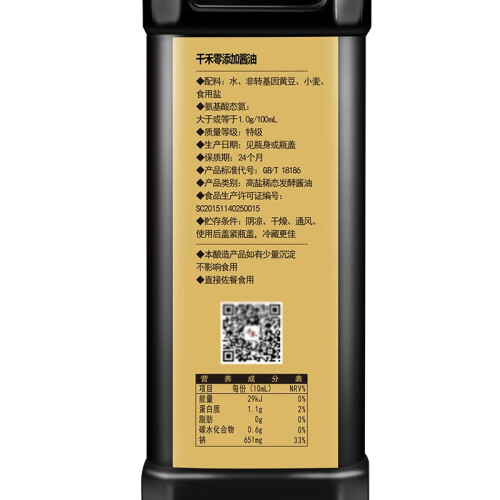 这款千禾御藏本酿酱油,380天超长酿造周期酿造,高盐稀态工艺发酵,发酵过程十分彻底,酱油中的醇、酯类有机物质丰富,使得这款特级酱油的味道醇厚,鲜度高,只用水、非转基因黄豆、小麦、食用盐这四种原料酿造,不使用味精、色素、防腐剂、酵母抽提物等化学物质,鲜味全靠自然发酵,氨基酸态氮含量超过1.2g/100ml,比特级酱油的标准还要高出50%,品质上乘,非常适合烹饪爱好者、美食达人、专业厨师囤一些,适宜多种美食烹饪。