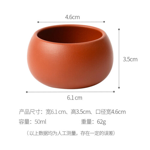 百看不厌,经典杯型,纯色小杯,颜色微红,淡雅恬静,圆润小巧,盈手可握,烧成后的朱泥蕴透红润,有润色质感,泡养日久愈加红润朴拙,朱泥泥性软嫩,色泽红艳,娇妍多姿,触感舒适,以指弹扣,声音清脆,共振性佳,收缩比高达30%,烧制成型不易。