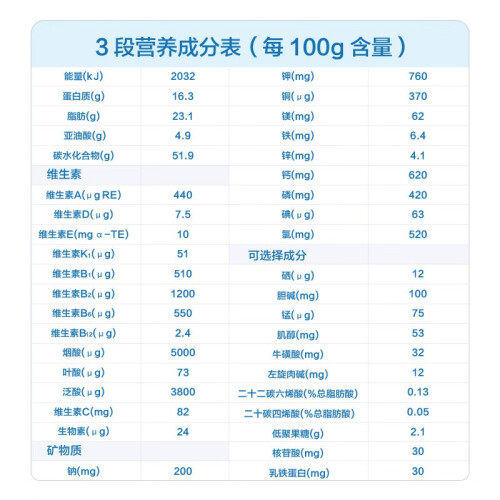 卡洛塔妮为台湾友华集团与新西兰DGC共有品牌,命名自纽西兰当地一个服务性育婴谘询机构之名“Karitane”,卡洛塔妮自1991成立以来,结合了纽西兰和台湾杰出医药及婴幼儿专家之研究,共同研发适合亚太地区婴幼儿体质之产品,坚持以严格的品质控管,多年来,均采用原罐原装的方式进口羊、牛奶粉,不仅取得产地纽西兰的国家认证,同时也符合台湾卫生署的品质标准。这款奶粉含不含蔗糖、香料、棕榈油,富含多种维生素、含多种矿物质,营养丰富。规格:900g。