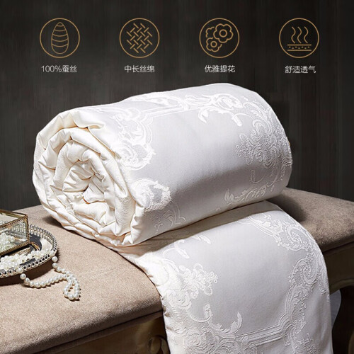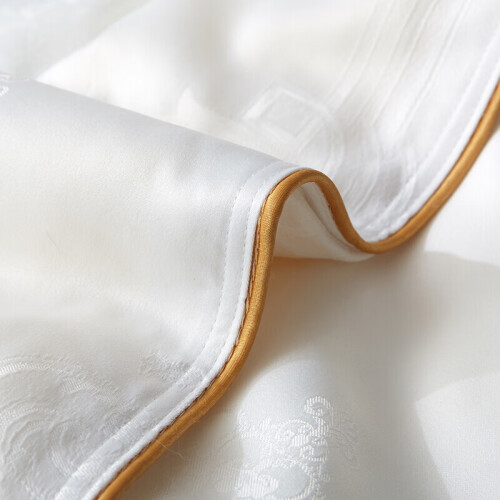 蚕丝称为“纤维皇后”,因含有丰富的多孔结构,有利于水汽的流通,让被窝爽而不温,温而不燥,冬暖夏凉。蛋白质纤维,丝丝细腻而坚韧,疏水丝胶,例如荷叶的疏水性,更好的排出湿气。定位绗缝工艺,针脚细密匀称紧,不易结团。