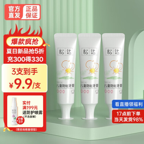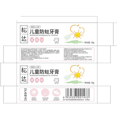 松达 儿童防蛀牙膏 3-12岁 50g*3支,专业防蛀,添加活性钙,助力宝宝牙齿生长有效抵御细菌。天然木糖醇,宝宝爱上刷牙。低泡技术,温和无刺激,低氟配方,安全防蛀。
