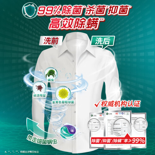 强效去渍,添加抗菌成分,洗衣更加放心。小巧更轻便,一颗可洗6至8件衣物,专利膜更易溶,瞬间释放超强活性,分腔储存,2D构造。