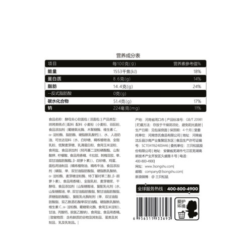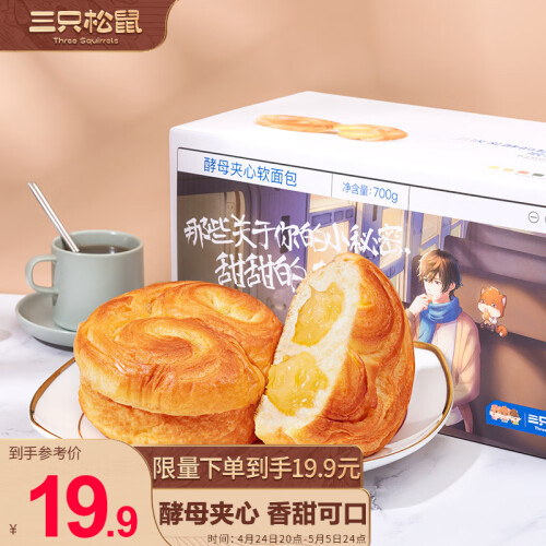 三只松鼠(Three Squirrels)这款酵母夹心软面包,配料选用小麦粉、鸡蛋、全脂乳粉等。面包松软,内馅柔滑细腻,口感甜而不腻。独立小袋包装,便于携带,开袋即食。保质期为4个月,请置于阴凉干燥处保存,避免阳光直射。