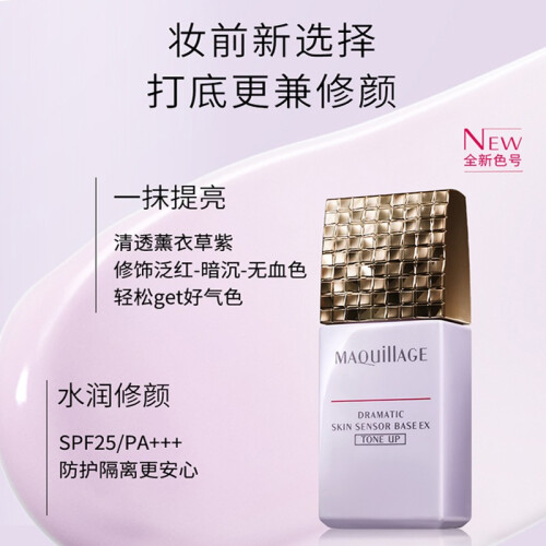 作为时常出没在Cosme排行榜的明星妆前乳,这款薰衣草紫色是2021年的新色。不仅保有基础款的优点,还能提亮&均匀肤色的作用,可以有提亮肤色的作用,让底妆看上去更自然、有光泽。肤色暗沉、偏黄或泛红的朋友可以尝试紫隔离。