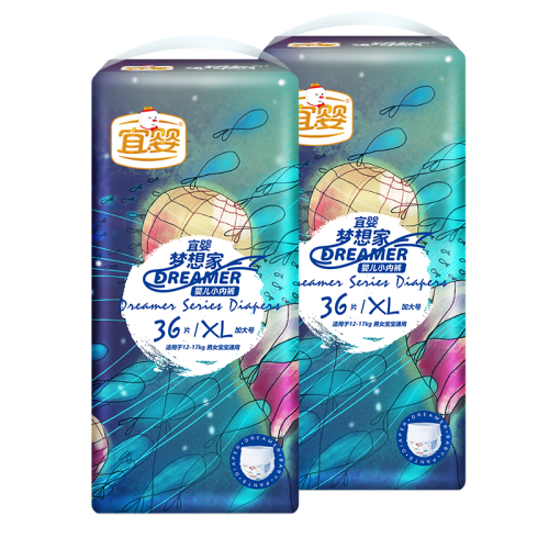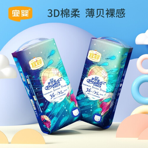 YIYING 宜婴 宝宝拉拉裤 XL36片*2包,3D丝柔棉感,轻柔蓬松,宝宝肌肤的守护天使,为宝宝梦想保驾护航。灵敏尿显提示,一眼便知,智慧妈妈的明智选择。