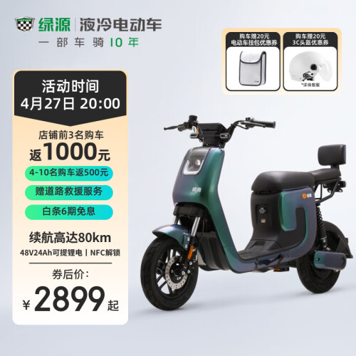 Luyuan 绿源 ZC-K5 新国标电动自行车,可提锂电池,续航高达80km。液冷电机,持久续航保6年。钢丝轮胎,耐磨抗扎。PP件材料,色母元素相撞,纯色搭配,时尚简约。采用高亮LED大灯,角度达50°,照射距离超30米,灯具内部采用石墨烯散热结构,完美解決散热问题。