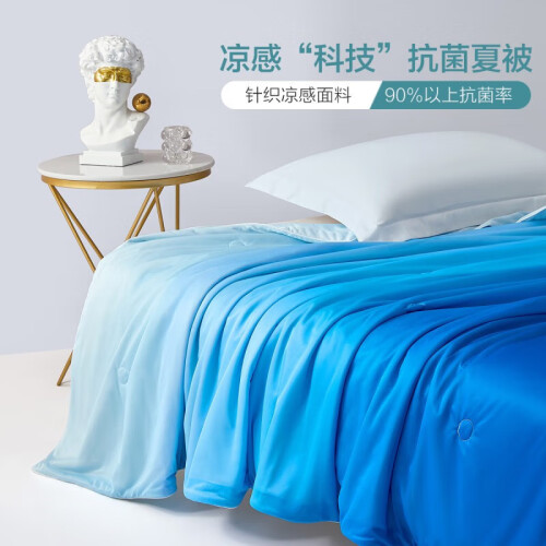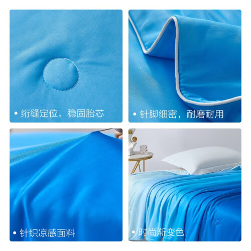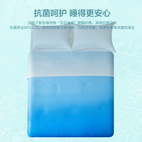 针织凉感面料,皮肤接触就能感受到凉爽。本款夏被添加了新型填充物“玉石凉感”聚酯纤维,保温率相较普通纤维低,带来凉感,一床被子就能享受到双重凉感,夏日体验感更舒爽。