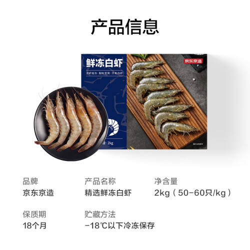 京东京造个大肥美鲜冻白虾,无污染海域鲜活捕捞,严控虾源品质,虾肉纯净,每只克重达20-25克,如手掌般大小,晶莹剔透。虾肉透明玉色,饱满紧致,烹调后经营明亮,口感爽滑肥嫩。
