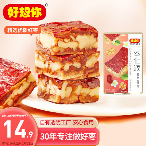当前的位置: 首页 > 今日值得买 > 好想你 枣仁派198g/袋 红小派枣夹核桃蜜饯果干新疆特产红枣零食