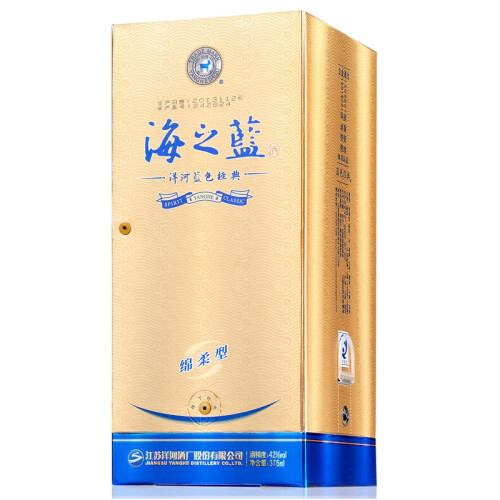 海之蓝是洋河最畅销的蓝色经典系列中的一款绵柔浓香型产品,海之蓝是中端白酒的中流砥柱。洋河蓝色系列的酒体在保持了洋河传统的甜、绵、软、净、香风格的基础上, 不仅绵中藏柔,柔中蕴香,更具有香气幽雅宜人、绵甜柔和、醇厚净爽、余味悠长的典型风格。海之蓝于2018年经历更新换代,现在叫新版海之蓝,据说添加了原来的天之蓝老酒,入口柔和,下肚也不呛,尾端微甜。可能对于一些爱酒人士来说不够带劲,不够畅快。适合与亲戚朋友共饮,小喝两杯。简约、大气的酒瓶设计,利用光线潜隐,蓝色深浅的层次变化,真实呈现大海的原生面貌,“比大海更宽广的是天空,比天空更博大的是男人的情怀”,这句风靡全国的金句让人为之印象深刻。规格:375ml*6瓶