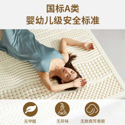 本款京造森呼吸系列原产进口乳胶床垫配备三种厚度,不同厚度,不同的舒适体验,7.5cm既可作为榻榻米,也可搭配床垫使用,3/5cm则根据求轻松搭配床垫,产品采用禄普一体成型工艺,0合成胶0滑石粉添加,让您体验天然高纯度的享受,此款采用人体工学七区释压设计,结合70D黄金密度,自然承托更贴心增加分区按摩颗粒,整晚伴您安睡,床垫采用双面冲孔设计,上下床面均匀分布透气孔槽,乳胶内部亦分布上亿个蜂窝式气孔,两者配合,形成“天然的空调系统”可及时散出睡眠中的余热和潮气,透气舒爽,不惧闷热,天然乳胶的高回弹性可以吸收人在睡眠时产生的震动和噪音,无需担心翻身吵醒伴侣,自在同床,静音享睡。