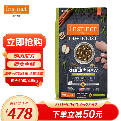 本款猫粮适合1岁以上的成猫食用,脂肪含量超低仅12%,较同系列主粮少10%卡路里,含有左旋肉碱成分,有助于成年猫咪燃烧脂肪,保持健康体态,无谷配方富含动物蛋白,满足猫咪日常所需能量,强壮肌肉,富含天然的Ω3、Ω6脂肪酸,有美毛护肤功效,还有更多的抗氧化剂蔬菜,有助于提高猫咪免疫健康,含有天然生肉粒冻干和膨化粮搭配,带给猫咪双重口感享受,适口性更强。