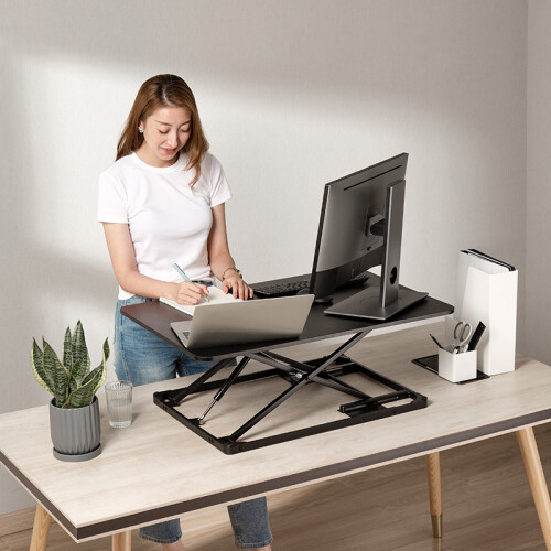 Brateck这款升降电脑支架,采用可升降设计,调整桌面高度,坐站交替,减轻脊椎压力。搭载LAT线性技术,通过气动推杆带来线性驱动力,在升高时提供推力,下降时辅助缓降,开合启动方便省力。桌板选用实木颗粒板作为基材,手感温润,防霉保温;边角圆润处理,降低因磕碰造成的伤害。在款式上,拥有呵护腰椎款、加宽款两款可选。