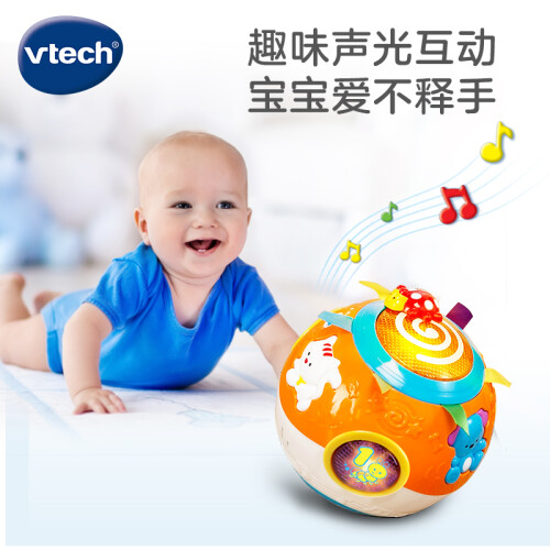 爬行对宝宝的发育至关重要,适当对宝宝进行爬行训练,对日后的走路也非常有利。这款伟易达的转转球就是帮助宝宝训练爬行的,通过马力驱动,球体能慢速的滚动,转动是会发出活泼的音乐、或者动物的叫声以及舞动的灯光效果,吸引宝宝追视爬行。球上带偶可爱的按键和彩带,通过按下小动物按键,会发出该小动物的叫声,帮助宝宝辨别小动物,另外也可以通过小部件训练宝宝的按、拧、拉等手部动作。适合6个月以上宝宝玩耍。
