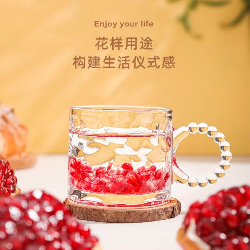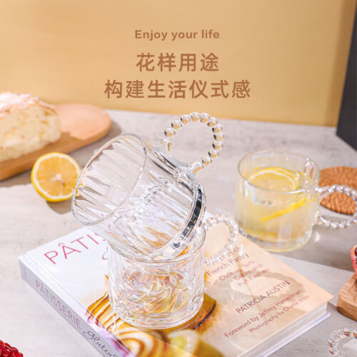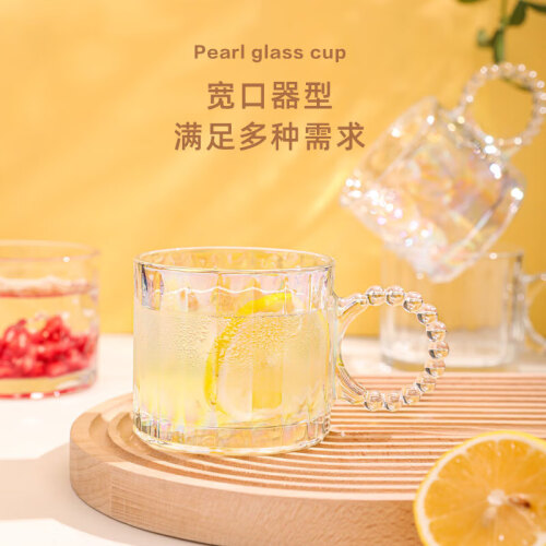 圆环珍珠把手,拿握舒适。无铅玻璃,光泽剔透晶莹。宽口器型,满足多种需求。一体成型设计,流线顺畅,触感顺滑。