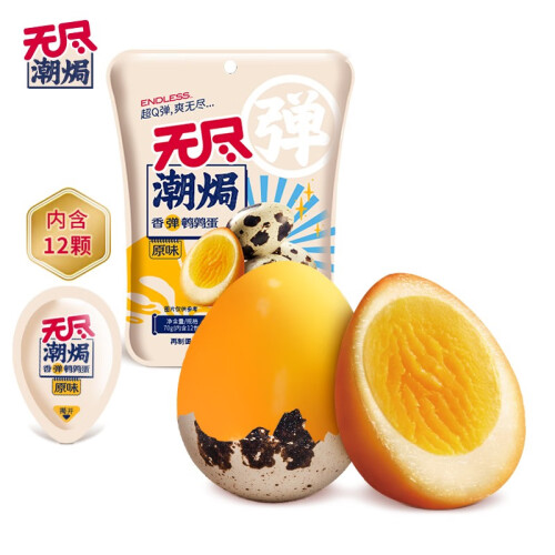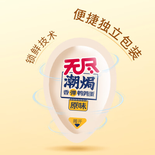 无穷推出的这款海盐焗鹌鹑蛋,选用鲜鹌鹑蛋、白砂糖、食用盐等配料制成,每100g中含蛋白质19.2g,脂肪16.3g。鹌鹑蛋外形圆润饱满,蛋白滑嫩,蛋黄绵密松软,香味浓郁。独立小袋包装,方便携带,开袋即食。