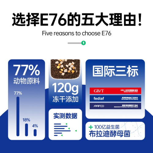 此款猫粮适合全阶段猫咪食用,76%动物原料,60%鸡肉和三文鱼肉类含量,7%鸡内脏和牛内脏含量,9%油脂乳蛋含量,粗蛋白达40.44%,优质蛋白成分高,100g冻干添加,使用生骨肉包裹技术plus,适口性提高,另添加20亿益生菌,改善肠道菌群,呵护肠胃健康。
