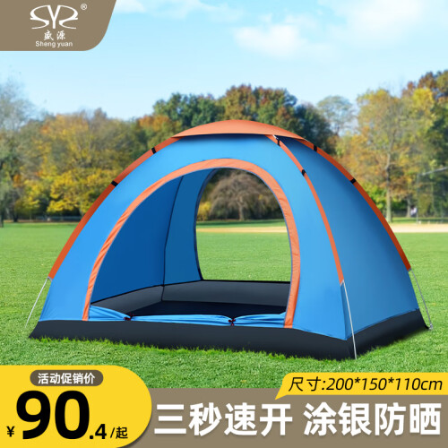 盛源 A34 双开门自动帐篷采用一秒速开设计,省时省力,选用强韧纤维材料制作,韧性和弹力相结合,一甩即开,外层有涂银涤纶,防晒遮阳,采用双开门设计,加强空气对流,材料轻便,双人型重量为1.4kg,适合户外公园、郊外休闲游玩使用。