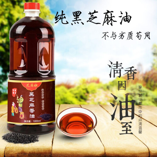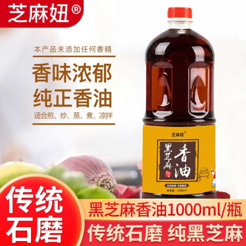 芝麻妞 黑芝麻油,石磨碾制,传统工艺制作,一滴入味,口水直流,飘香四溢,回味悠长,让你的饭菜香喷喷。规格:1000ml。