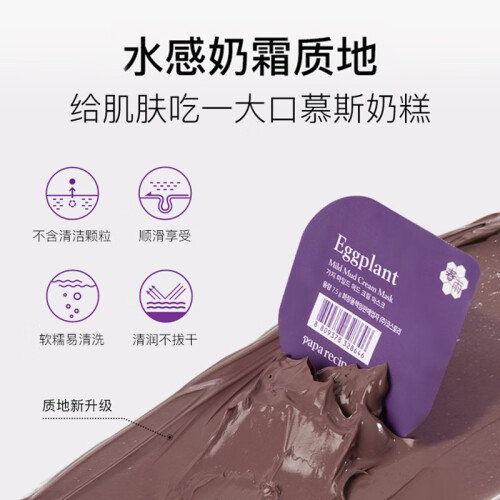 春雨茄子清透泥膜面膜,深层清洁,水润不紧绷,规格7.5g*10盒,质地水感绵密,奶油泥膜质地,含有细小磨砂颗粒。适合所有肤质,包括敏感肌。