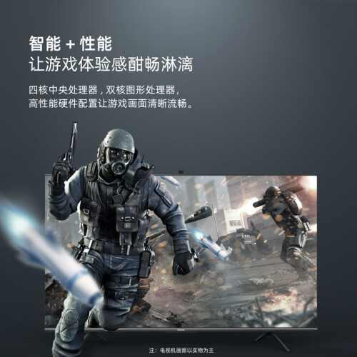 3840x2160分辨率 每一颗像素都光彩夺目 画面细腻,清晰生动。运动补偿(MEMC) 动态图像也清晰 运动补偿(MEMC), 在快速运动的画面中 插帧进行降噪与补偿,防止拖尾和抖动 让画面清晰流畅。智能+性能 让游戏体验感酣畅淋漓 四核中央处理器,双核图形处理器, 高性能硬件配置让游戏画面清晰流畅。