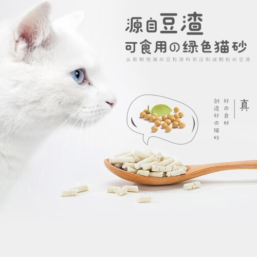 食品级豆腐猫砂,安全到可以吃掉,天然新鲜大豆+玉米淀粉,活性炭豆腐猫砂,速结团高效除臭,采用纳米矿晶活性炭原料。