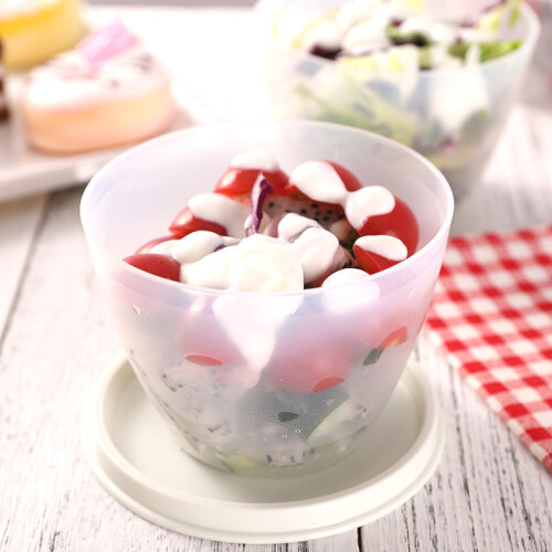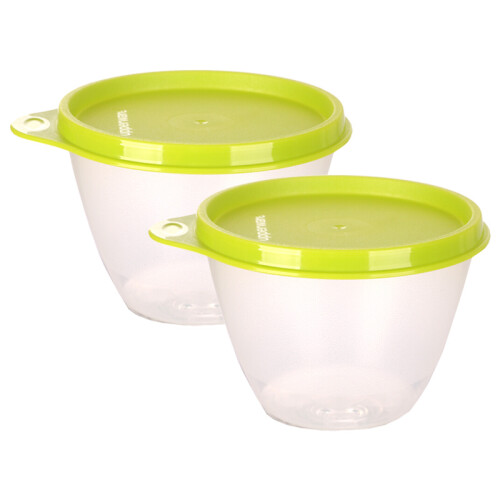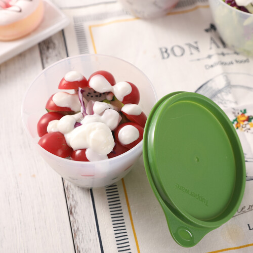 Tupperware(特百惠)全球著名的家居用品品牌,总部设在美国佛罗里达州奥兰多市。此款保鲜盒容器采用PP材质,盖子是PE材质,安全耐用,盖上凹槽与盒边紧密结合,防潮防漏,密封性好,弧形盖沿也方便开合,盒内光滑无缝,不易积攒污垢,清洗方便。规格:430ml*2