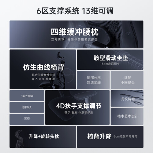 背靠整体可上下60mm升降,网布弹力加强,更加舒适