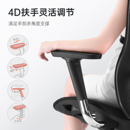 除此以外,还有如活动搭手、鞍形座垫避免前倾、铝合金高承重椅脚、BIMA认证气压棒、加厚底盘等优点,可以说是一款功能和设计都十分用心和趋向全面的人体工学座椅产品。