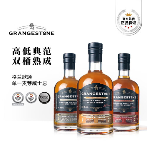格兰歌颂Grangestone是著名的格兰父子集团旗下子公司QSI(Quality Spirits International Limited)是苏格兰著名的威士忌集团之一,在HIGHLAND、SPEYSIDE和LOWLANDS拥有2家麦芽酒厂、1家谷物酒厂,产品线包括苏格兰单一麦芽威士忌、调和威士忌、纯麦威士忌等系列产品算是比较少见的了。格兰歌颂双桶陈酿单一麦芽威士忌,由酿酒师们精选出历史悠久的高品质原酒,遵循大厂标准进行手工调配,并经双桶陈酿而成,在初填美国橡木桶中熟成,再转波本桶、雪莉桶、朗姆桶陈酿。 是QSI推出的入门级过桶威士忌,选用接受度很高的三种基础桶来过桶,有三种风味选择,便于刚入门的人理解,也能提升刚入门的人对复杂度的认知。