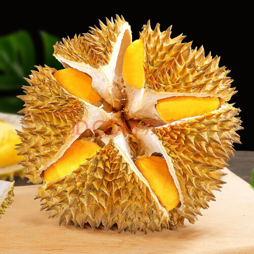 榴莲是一种锦葵目、木棉科巨型的热带常绿乔木,叶片长圆,顶端较尖,聚伞花序,花色淡黄,果实足球大小,果皮坚实,密生三角形刺,果肉是由假种皮的肉包组成,肉色淡黄,粘性多汁。青尼榴莲果核比甲仑小,风味和口感比一般榴莲更加浓郁和厚重。