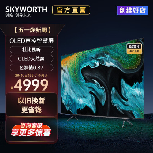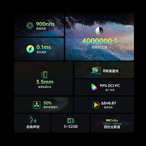 A83采用了LGD全新一代自发光屏,具有3317万个OLED自发光子像素,可以实现每个像素点的独立控光。屏幕整体的 发光效率、散热能力和使用寿命均大幅度提升。高达900its的峰值亮度,让A83的对比度达到了惊人的 4000000:1,画面的明暗表现力有了千万级的飞跃,亮 场暗场都拿捏得恰到好处。对于低帧率的视频信号源,通过MEMC技术的插帧算法,在播放时可以呈现出将原帧率提升近一倍的显示效果,即便是 高速运动的物体,其轨迹也能清晰可见。支持杜比视界HDR1O和杜比全景声,难以置信的深邃细节、鲜亮颜色,以及360°三维环绕音效,让大片生动呈现。