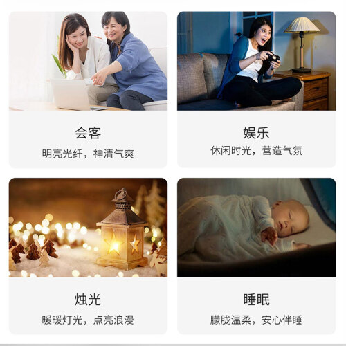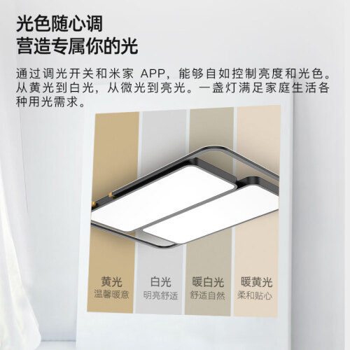 无极调色温调光,不同场景随心切换。多种控制,APP、智能音箱、遥控器等。无频闪蓝光危害,呵护双眼,预设场景,一键切换灯光模式。联动米家智能设备,和鹿客门锁联动,实现推门自动开灯,和智能窗帘联动,实现亮灯关窗帘,更多联动,玩转更酷生活方式。